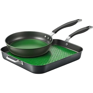 angry chef with flames in eyes, confidently crossing two frying pans across chest emoji