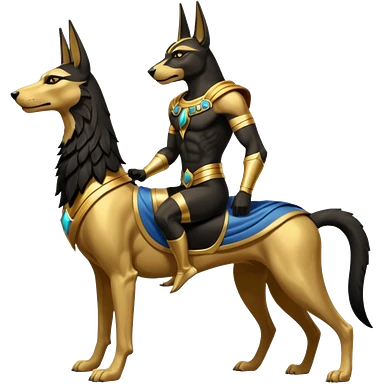 Ancient style saddled super avenger four-legged statue casually adorned anubis canine casually posed emoji