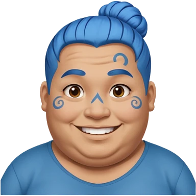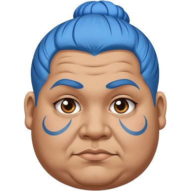 and blue hairobese man with lots of face tattoo and blue hair bun emoji | AI Emoji Generator