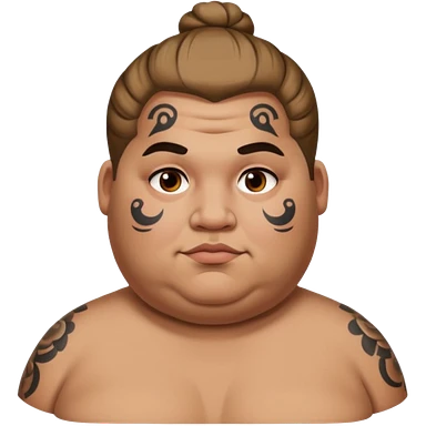 obese man with lots of face tattoo and hair bun emoji