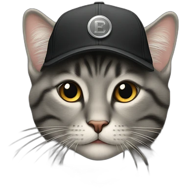 tan-red cat wearing a light-blue t-shirt and a blue base cap taps musical keyboard emoji
