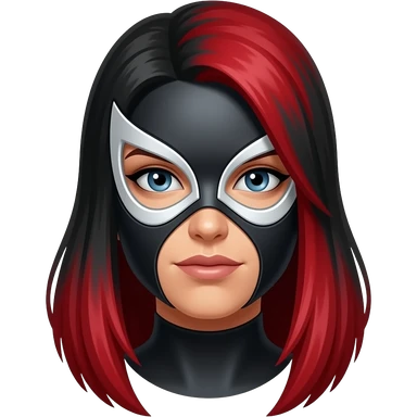 Mascara de luchador de mujer que se le vea el cabello negro con rojo con diselo como si fuera un androide un Ciborg que sea simétrico emoji