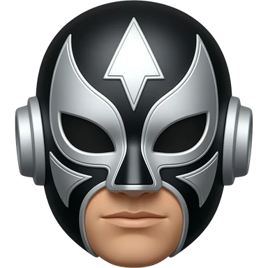 Mascara de luchador negro con plateado con diselo como si fuera un androide un Ciborg que sea simétrico y los diseños redondos a los costados literal como las partes androides de un ciborg pero en mascara de luchador emoji