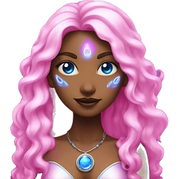 loving magical diva with pink andromedan skin long hair and blue eyes glowing third eye emoji