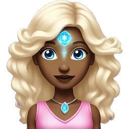 andromedan pink diva with thin face long blonde hair and blue eyes third eye glowing emoji