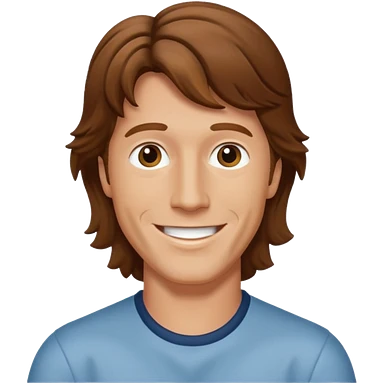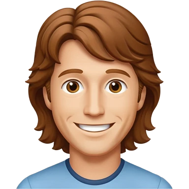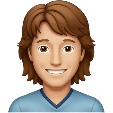 Andy as a cheerful cartoon emoji character, round face, big expressive eyes, friendly smile, simple and colorful emoji