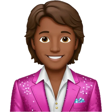 Andy Gibb with dark pink dress shirt, white sequin suit jacket emoji