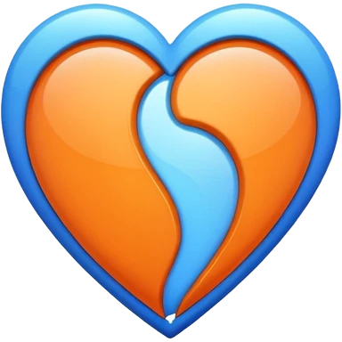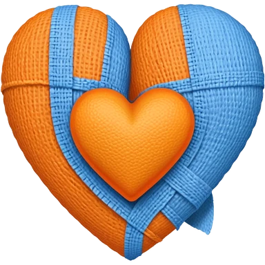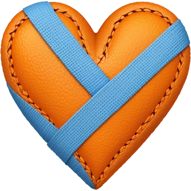 Half dark blue half orange heart split vertically, a white gauze stripe wrapping diagonally around the entire heart emoji