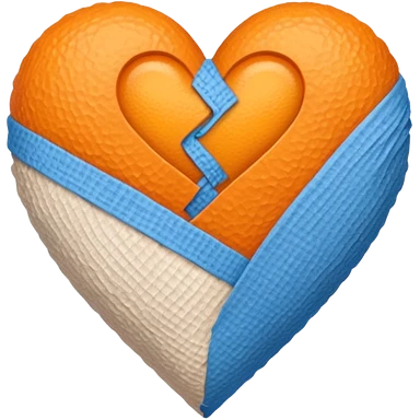 Half blue half orange heart split vertically with a white gauze bandage wrapped around it emoji
