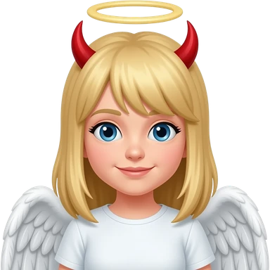 Créé un emojis avec une tenue complète d'ange blanc et des ailes noir de demon emoji
