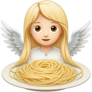 angel with white blindfolds on eyes, white dress, pale skin and two large wings emoji