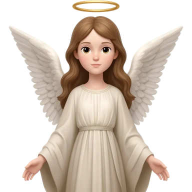 angel with white blindfolds on eyes, white dress, ale skin and two large wings emoji