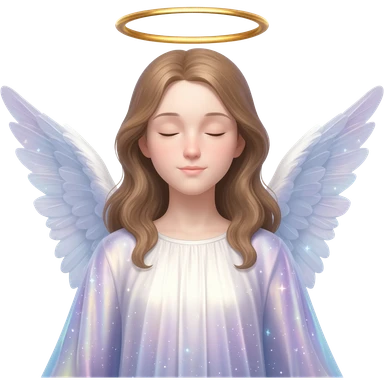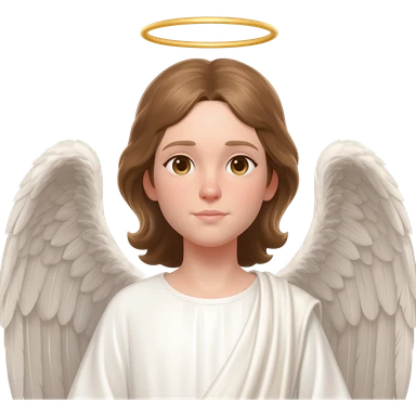 angel with white blindfolds on eyes, white dress, pale skin and two large wings emoji