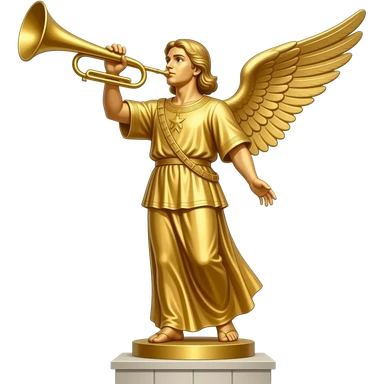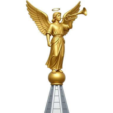 Angel Moroni from the top of temples. Gold statue blowing horn no wings emoji