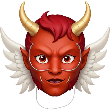 Grinning face with sweat emoji with angel and devil giving advice in 2 different ears on both sides of the face emoji