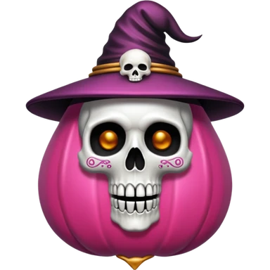 Caldero de bruja rosa con calaveras emoji