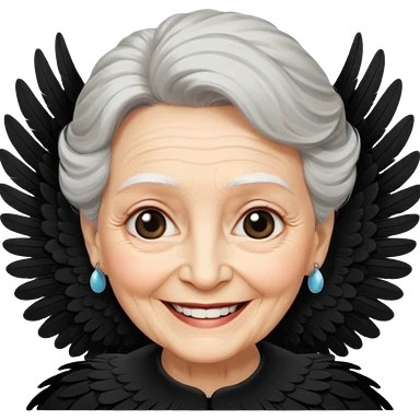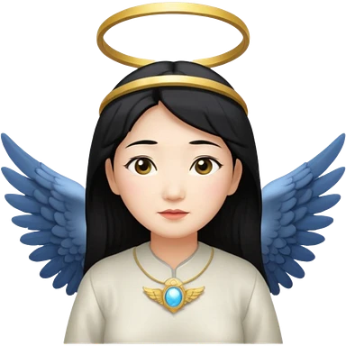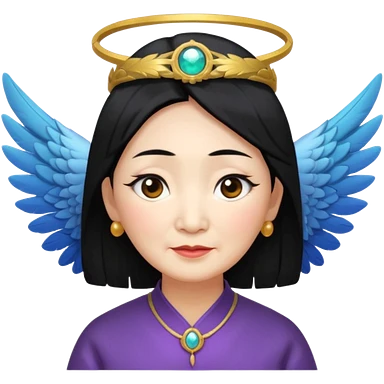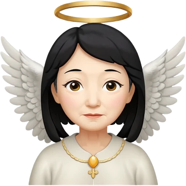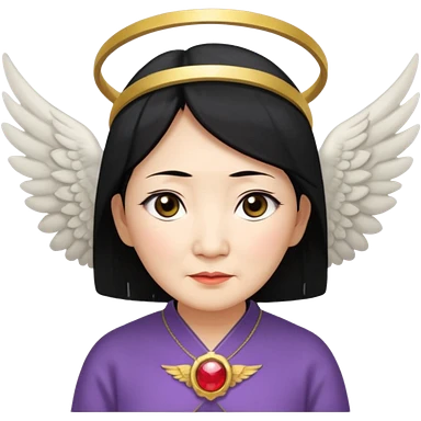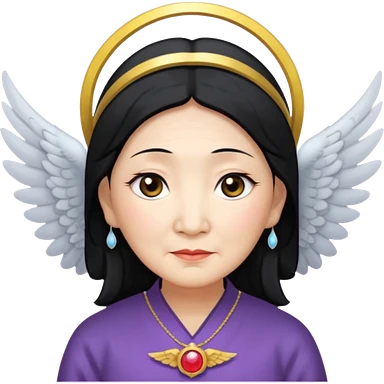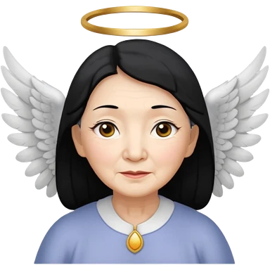 Angel Old Lady with wings black hair asian smaller eyes emoji