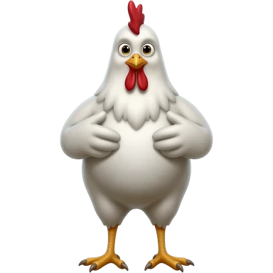 A chicken who has a let’s eat bib holding a cupcake emoji