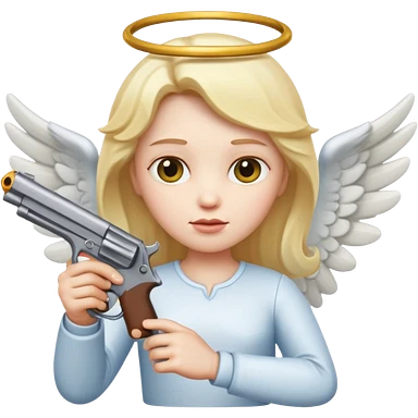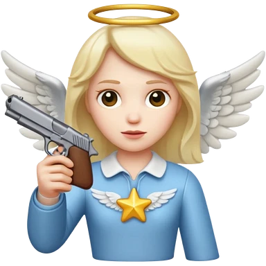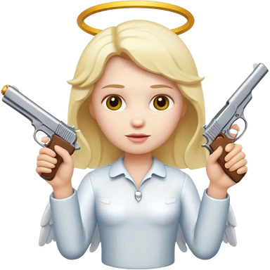 Angel dual-wielding pistols, shooting, dynamic action pose, glowing wings, no background emoji