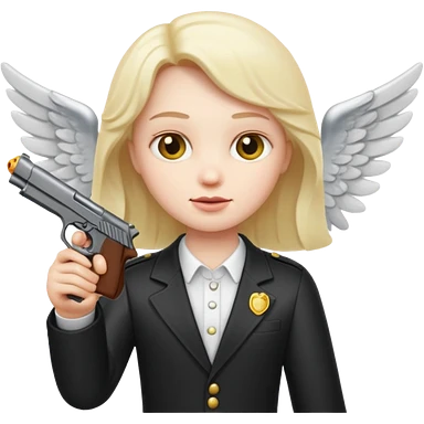 male Angel dual-wielding pistols, shooting, dynamic action pose, glowing wings, black clothes no background emoji
