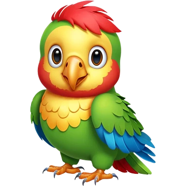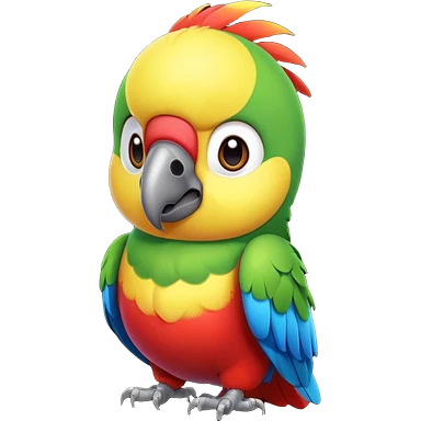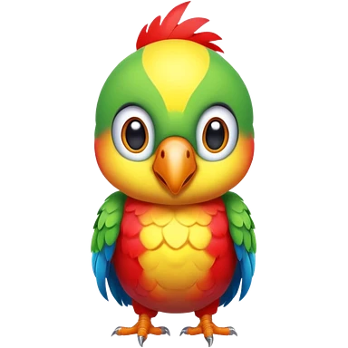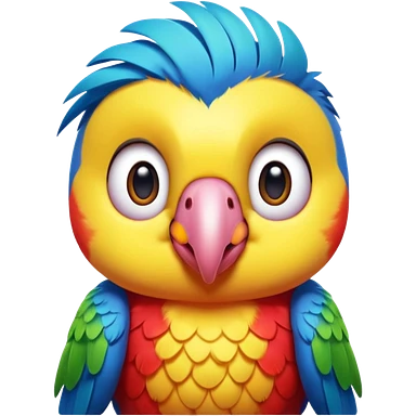 exotic parrot character, colorful feathers, cute face, 3D cartoon, mobile game icon style, clean background, no text, no watermark emoji
