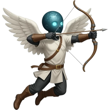 an angel with dark light as a head flying shooting bow and arrows emoji
