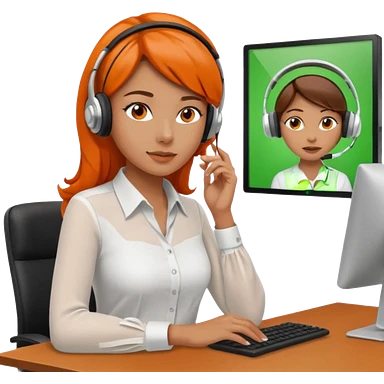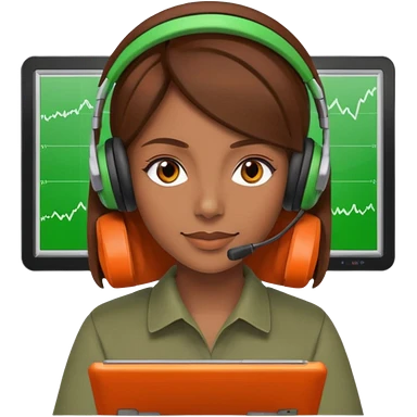 woman, brown hair, wearing a headset. she is controling limits from green, to orange, to red on the computer emoji