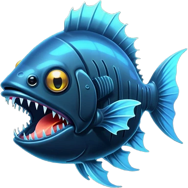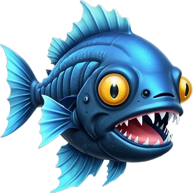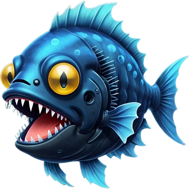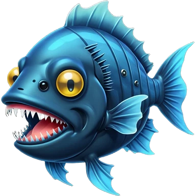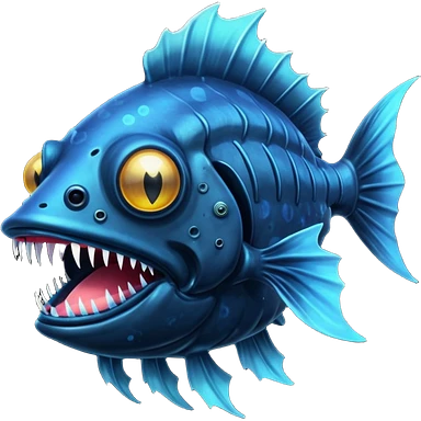 A blue angler fish with no lure and having blue smoke surrounding it facing front emoji