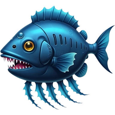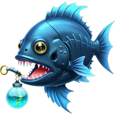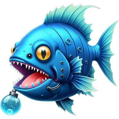 A blue angler fish with no lure and having blue smoke surrounding it  emoji