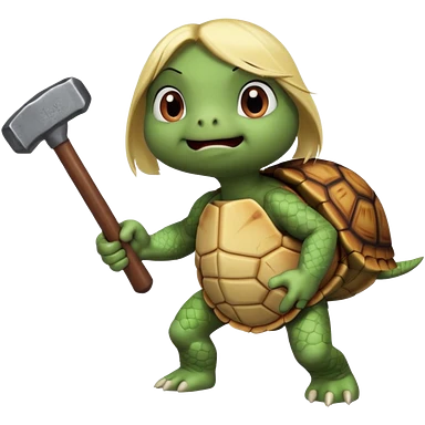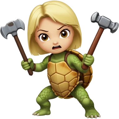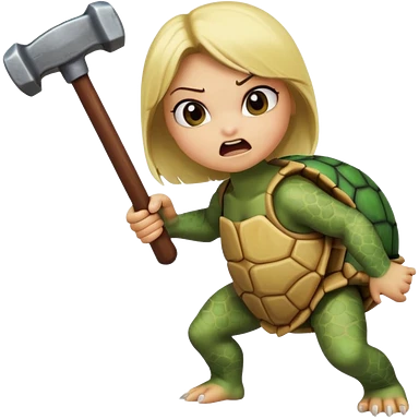 angry girl turtle(with blond balejage) hitting with hammer another turle animated cartoon emoji