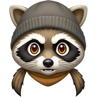 Angry Raccoon bandit with beanie hat branded “Sticky Bandits” emoji
