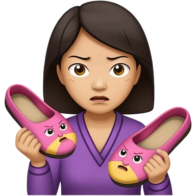 Angry Asian mom with slipper in hand emoji