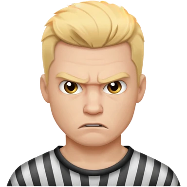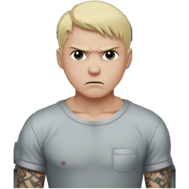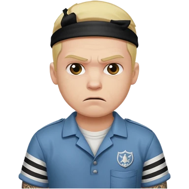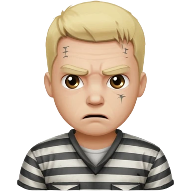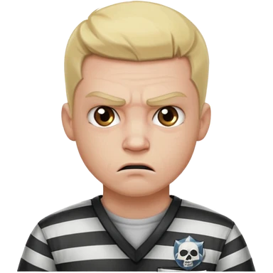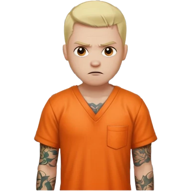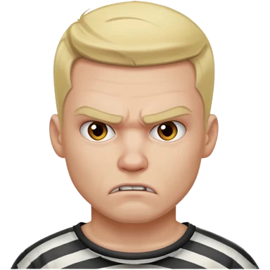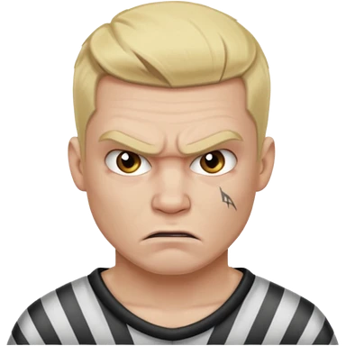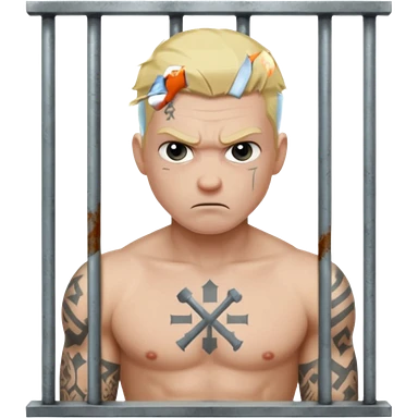 angry tattooed blonde male prisoner with prison cell bg emoji
