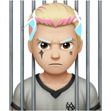 angry blonde tattooed male prisoner with prison cell bg emoji