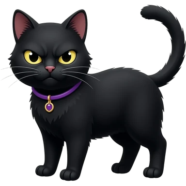 angry black cat with white circle of fur on chest with piercing green eyes emoji