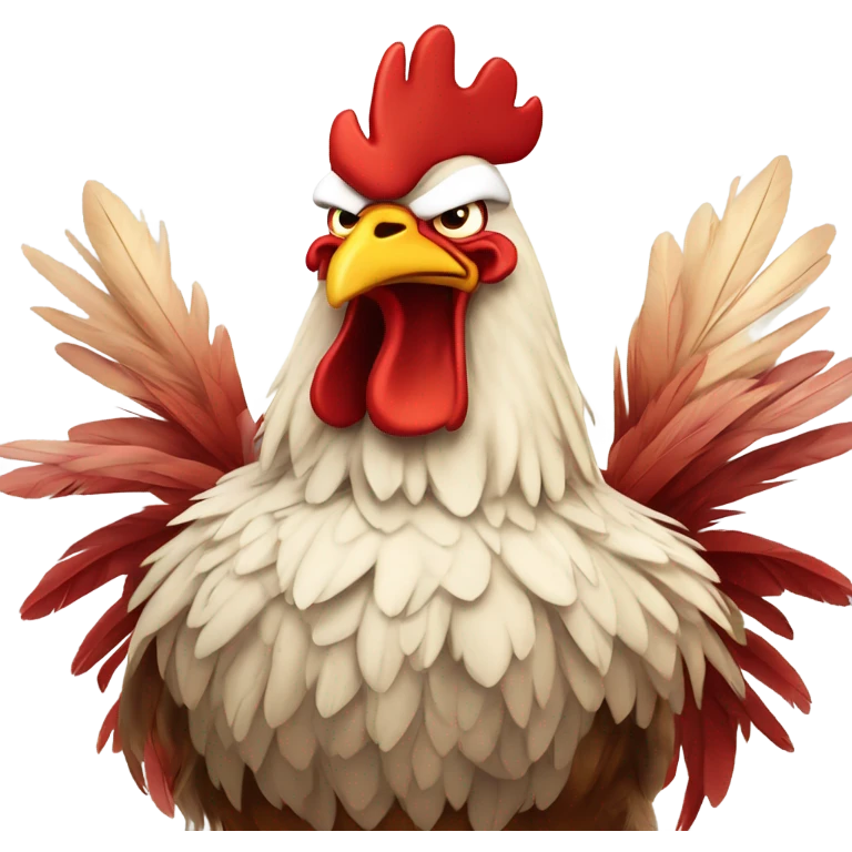 Cinematic Comical Brown Rooster Portrait Emoji, Head tilted dramatically with an exaggeratedly amused expression, featuring a striking, glossy brown plumage with a bold red comb, wide, expressive warm eyes filled with playful disbelief, Simplified yet hilariously expressive features, highly detailed, glowing with a slightly sassy glow, high shine, dramatic yet playful, stylized with an air of cheeky mischief, bright and endearing, soft glowing outline, capturing the essence of a spirited and over-the-top rooster, so meme-worthy it feels like it could crow its way into internet fame instantly! emoji