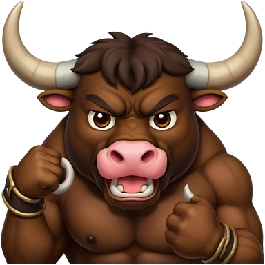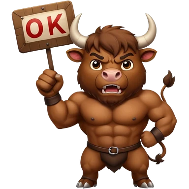 Angry powerful bull emoji holding a sign with the words OK in front of it emoji