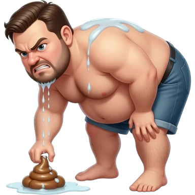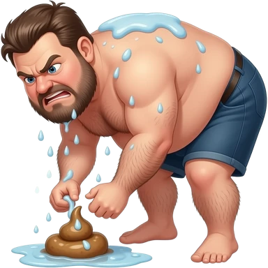 angry disgusting very hairy very obese unshaved man showering while bending over to poop emoji