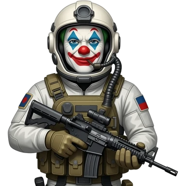 Clown Space Pilot wearing Tactial Gear with a rifle emoji