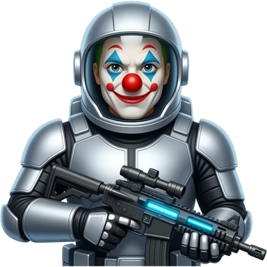 Angry Clown Space Soldier in Space Armor with Laser Rifle covered in Alien blood emoji | AI Emoji Generator