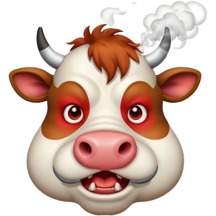 Angry cow with smoke coming out from its nose and red emoji | AI Emoji Generator