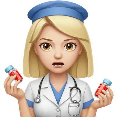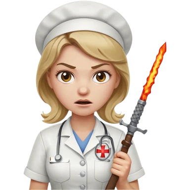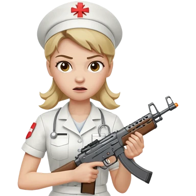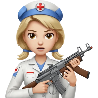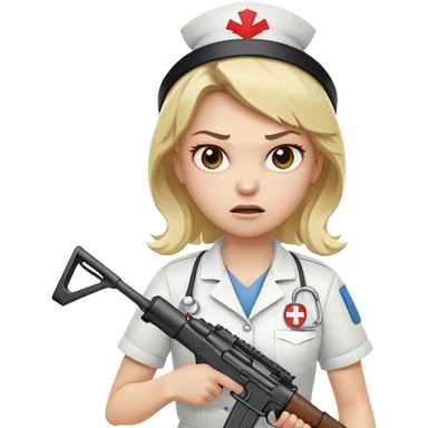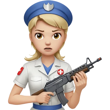 angry dark blonde nurse with an assault rifle emoji | AI Emoji Generator