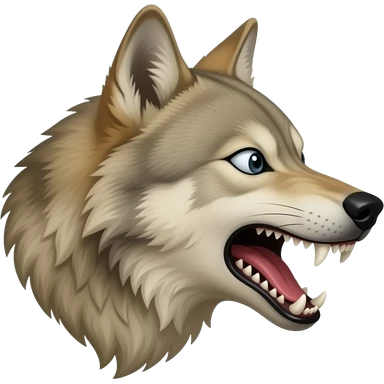 Baring fangs beige wolf head realistic look mostly aggressive Turn sideways terrified emoji