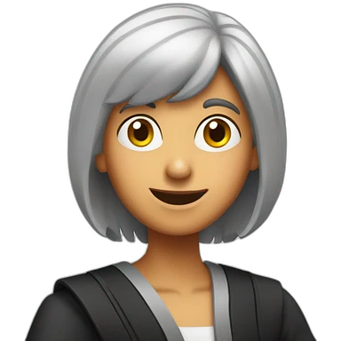 Angry with blue eyes, blonde hair with bangs, circles under her eyes from being tired in a black judges robe emoji