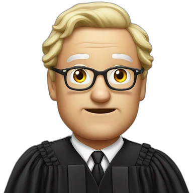 Very Angry with blue eyes, blonde hair with bangs, circles under her eyes from being tired in a black judges robe emoji