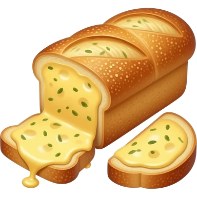 golden garlic bread, crisp edges, melted butter, herbs, soft fluffy interior, toasted glossy crust, parsley and garlic flecks, no plate or knife, soft lighting, emoji scale emoji