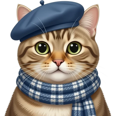 a cat in paris wearing a beret hat and scarf emoji