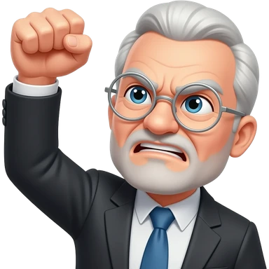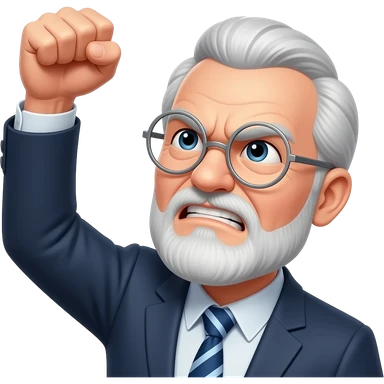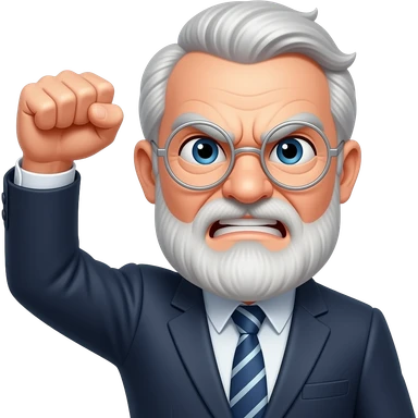 Angry old man with bushy eyebrows with silver round glasses shaking his fist at the sky emoji