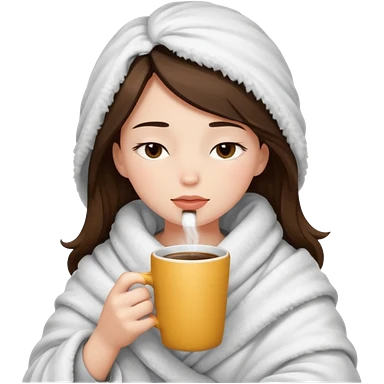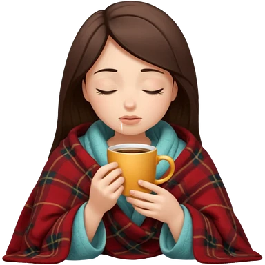 girl inside a blanket sipping coffee eyes closed, visibly distressed emoji