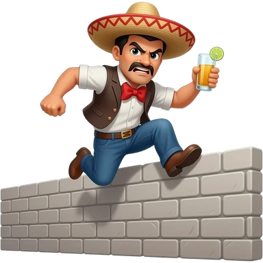 Angry Hispanic man with a sombrero and tequila jumping over a tall wall emoji